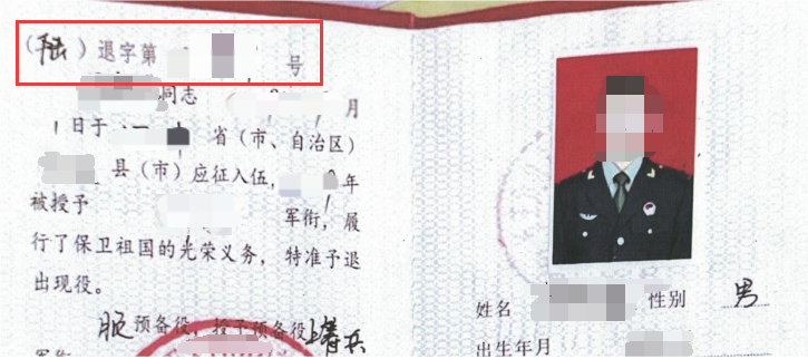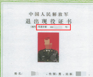 2022年及以后的退出现役证编号为下图红色框内的数字和汉字。